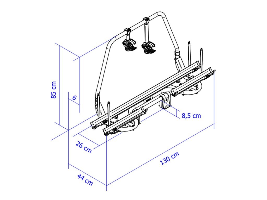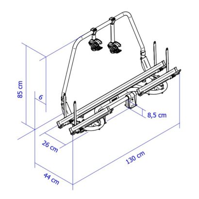 Les rails coulissants offrent une compatibilité optimale avec la plupart des vélos, du VTT au vélo enfant. Conçu pour les timons standards et les cadres en A courts, ce porte-vélos robuste affiche une capacité de charge totale de 60 kg, permettant le transport de deux vélos (électriques inclus).