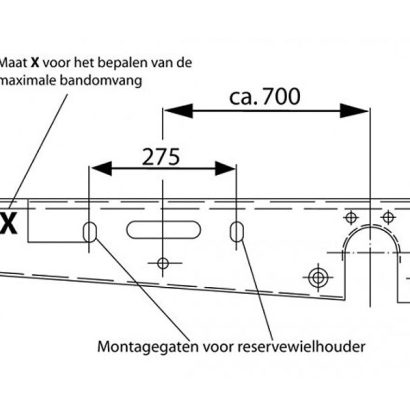 Le support de roue de secours AL-KO type NL est conçu pour une installation sous châssis, permettant l’intégration de la roue de secours sans empiéter sur l’espace intérieur de la caravane. Sa structure en acier robuste assure une excellente résistance mécanique tout en maintenant un poids total réduit de 6,8 kg.